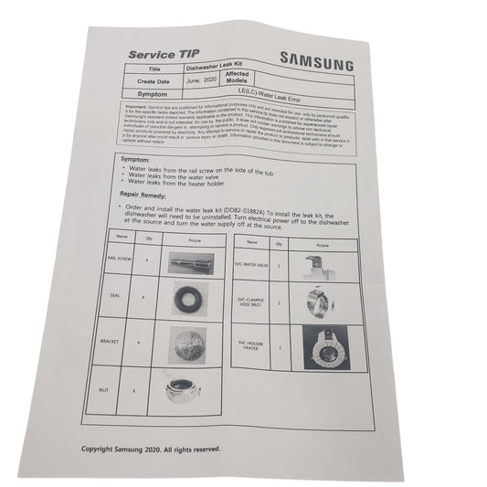 New OEM Replacement for Samsung Dishwasher Leak Kit DD82-01882A 1Y