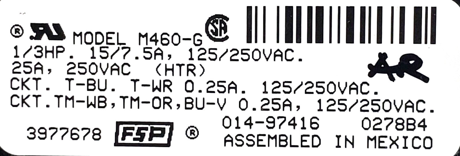 Model: | Whirlpool 3977678 |