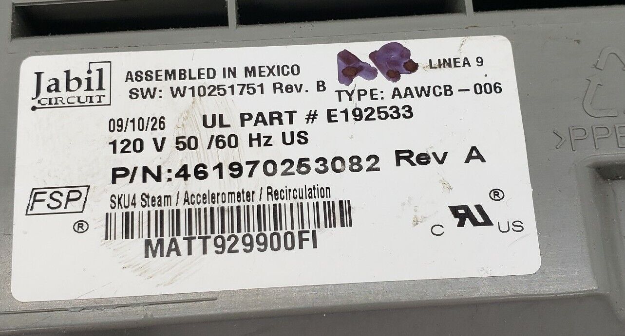 Genuine OEM Replacement for Whirlpool Washer Control W10251751