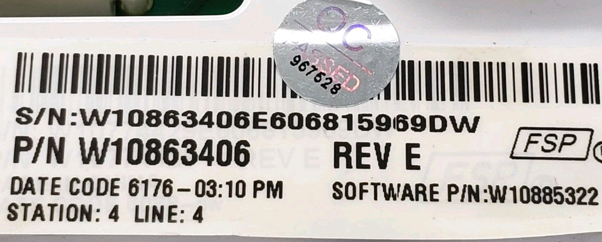 OEM Replacement for Whirlpool Control Board W10863406 -